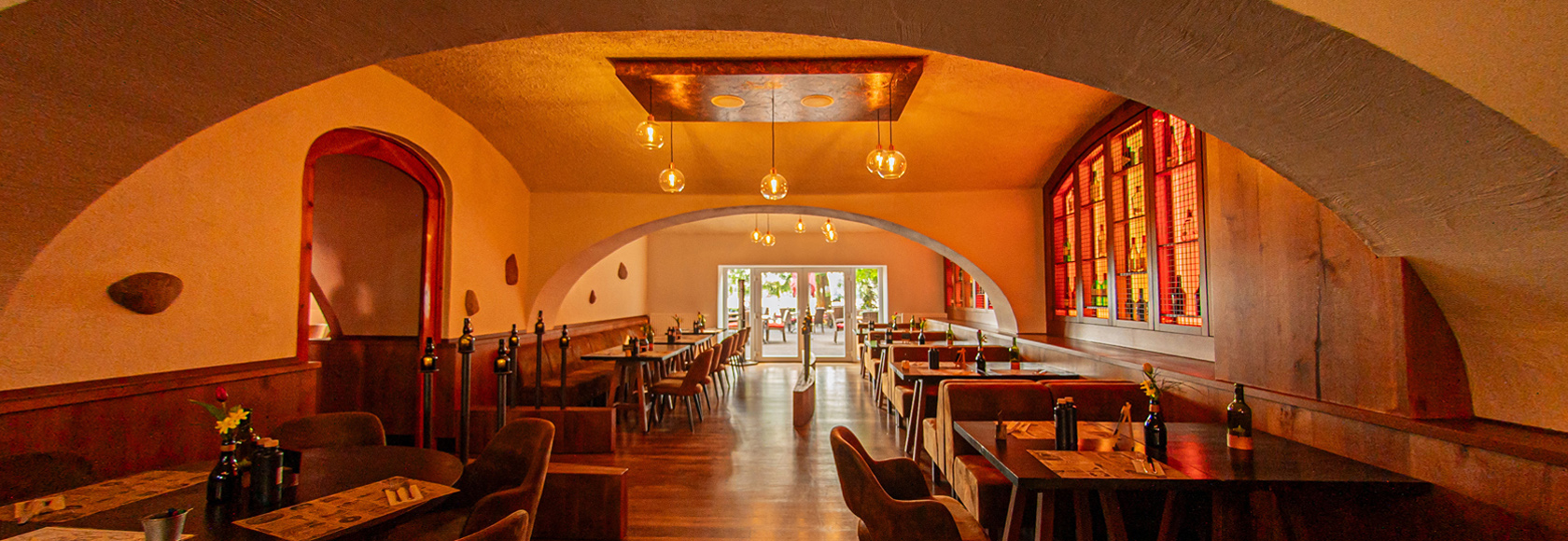 Die Gewölbe unseres Restaurants vermitteln ein wunderschönes Ambiente am Tag und ganz besonders in den Abendstunden durch eine individuelle Beleuchtung. Zu jeder Jahreszeit haben Sie von hier aus einen wunderschönen Blick auf den Mirower See. In unserem Gewölberestaurant präsentieren Ihnen unsere Köche landestypische Speisen.